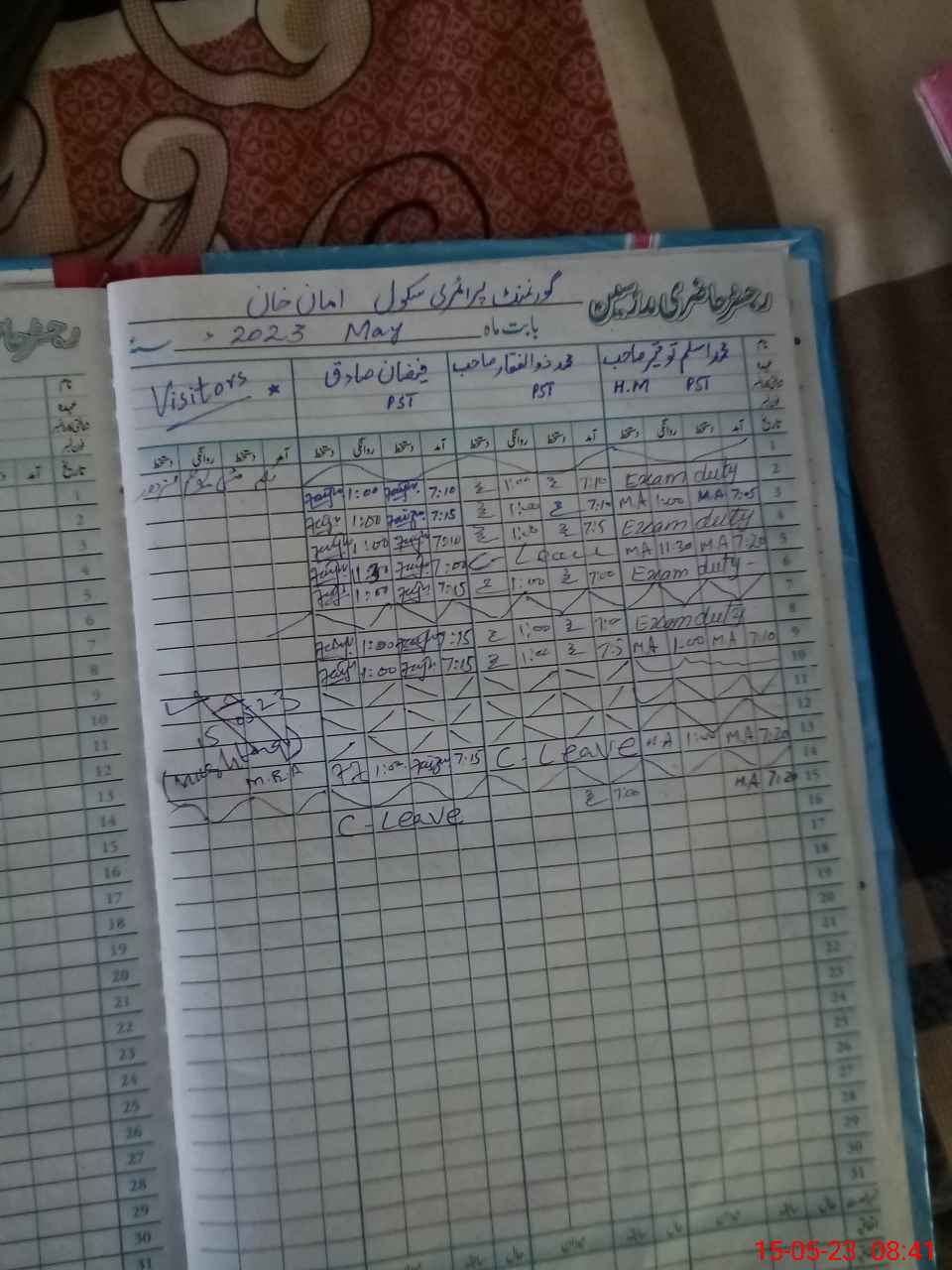 | Leave | Duty | Absent | Maternity | Medical | Ex- Pak |