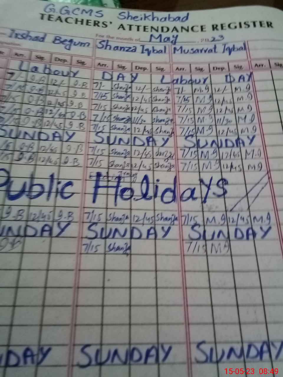 | Name: IR**** BE**** Designation: (School Headmaster's/Headmistress's) PST Phone/Cell Number: 03**** |