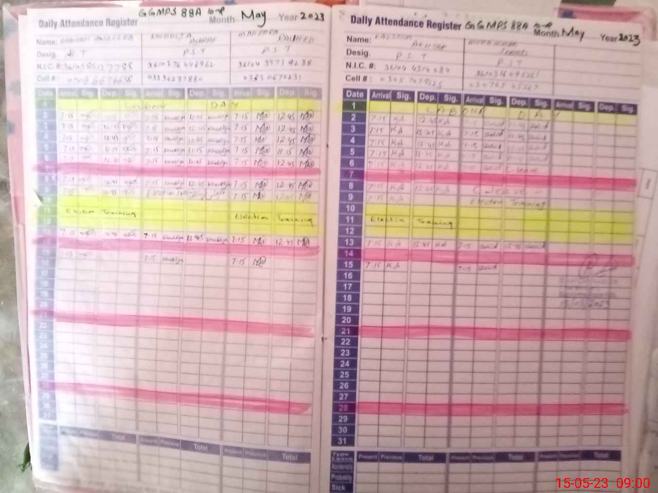 | CNIC | Full Name | Designation | R/C | Absence During Last Calender Month |