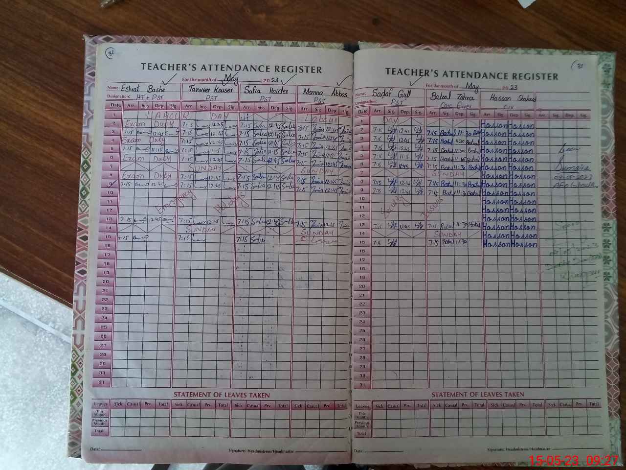 | Leave | Duty | Absent | Maternity | Medical | Ex- Pak |