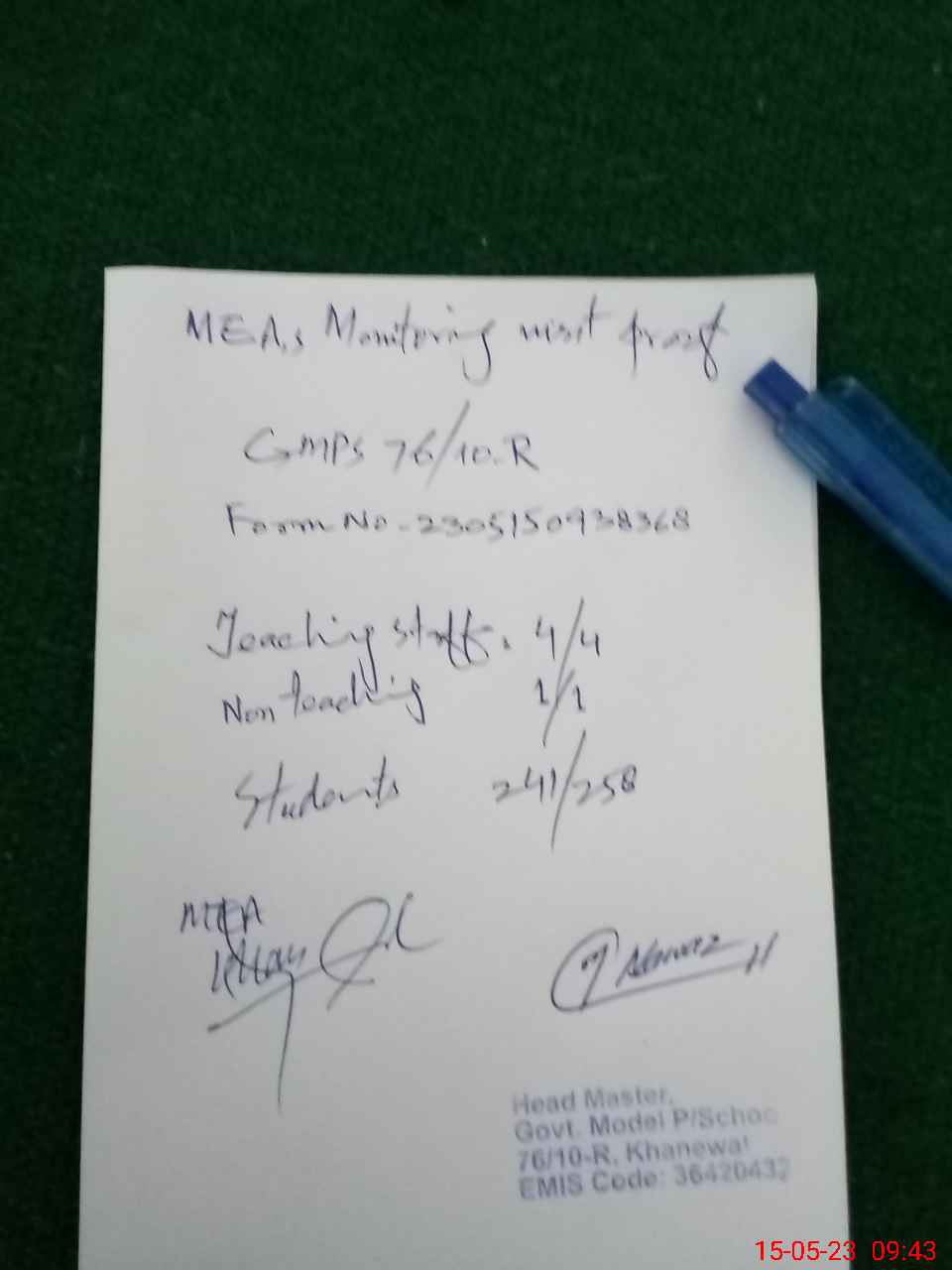| EMIS Code: 36420432 | Name of School: GMPS 76/10-R, KHANEWAL | |||