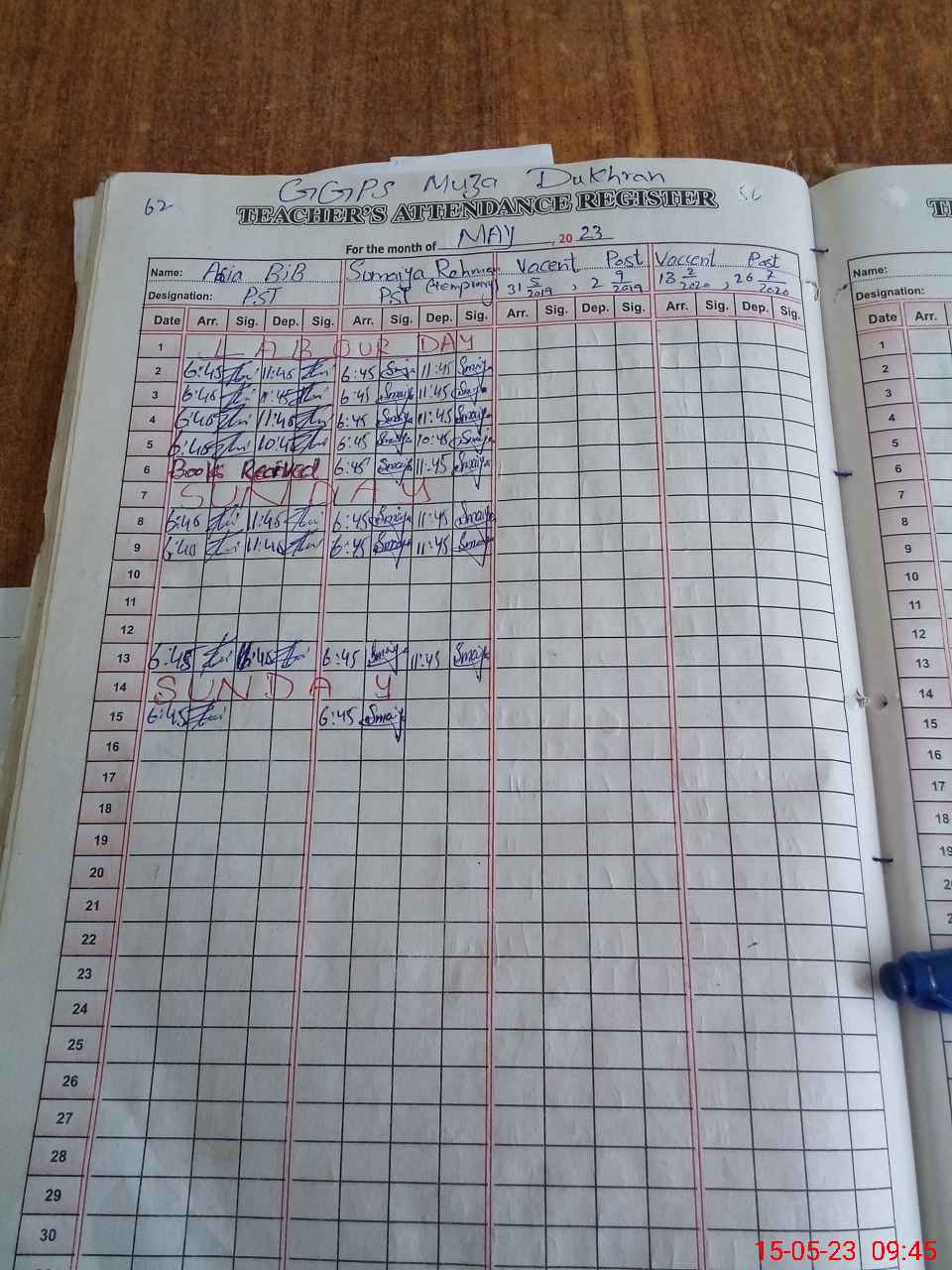 | CNIC | Full Name | Designation | R/C | Absence During Last Calender Month |