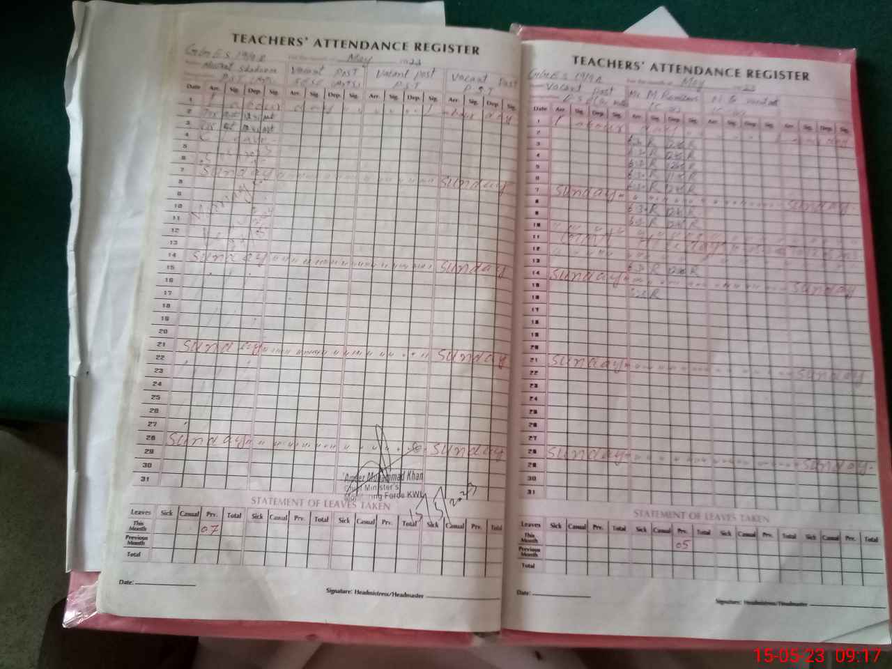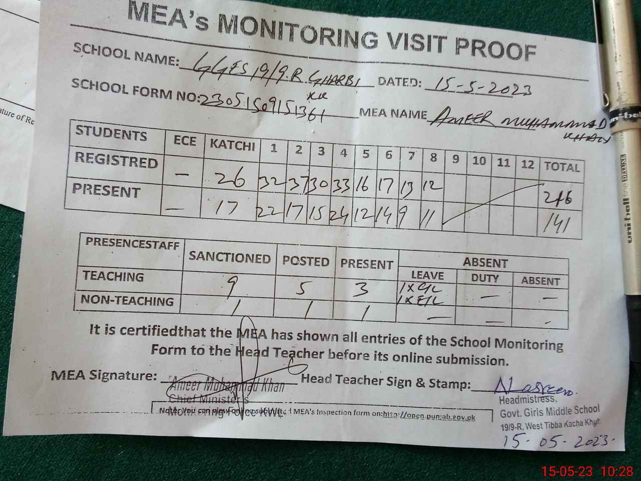 | Attendance Register | Head Teacher | MEA with School | Visit Proof |