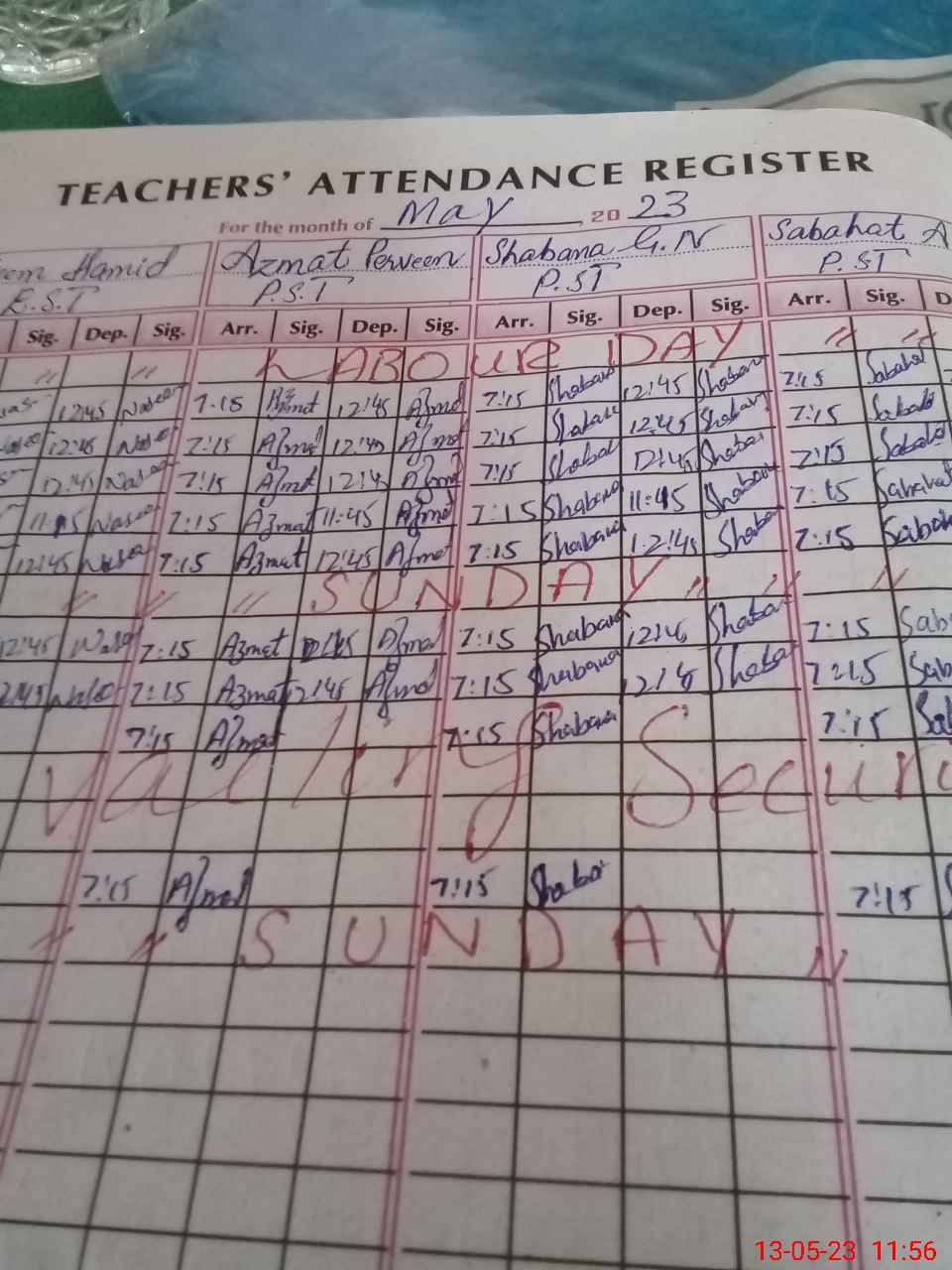 | CNIC | Full Name | Designation | R/C | Absence During Last Calender Month |