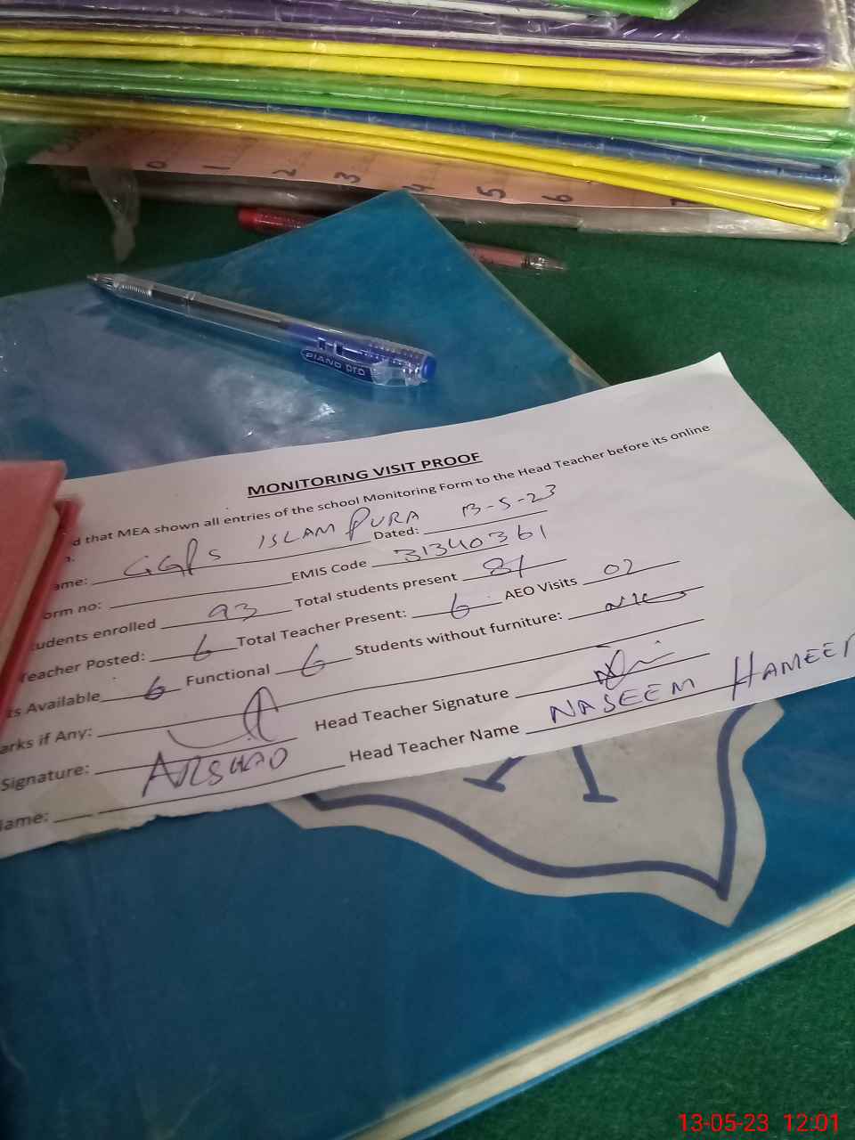 | Attendance Register | Head Teacher | MEA with School | Visit Proof |