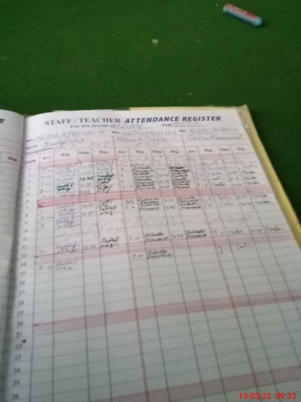 | CNIC | Full Name | Designation | R/C | Absence During Last Calender Month |