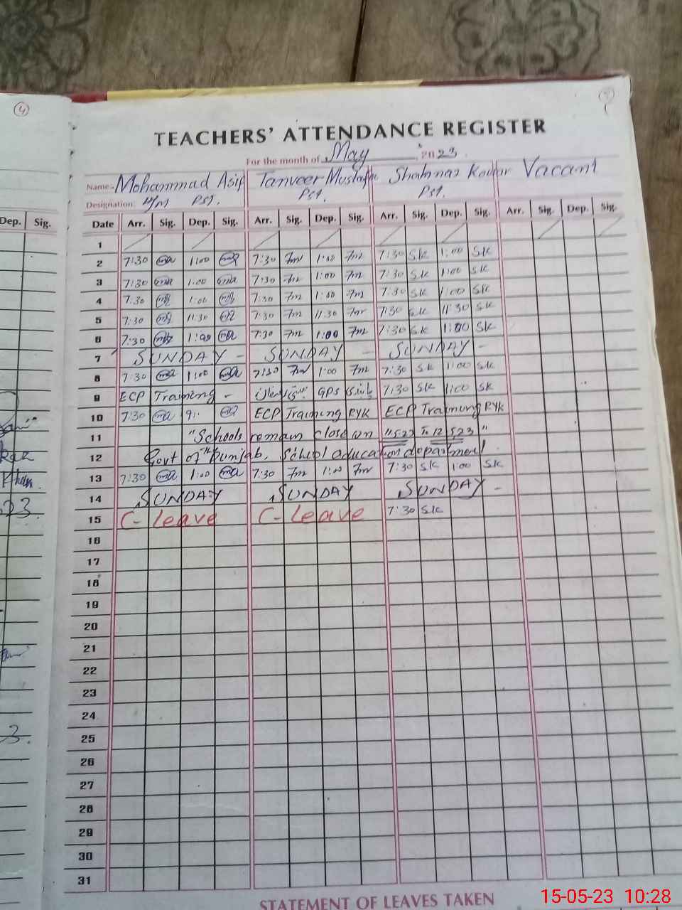 | 31**** | Ta**** Mu**** | PST | Regular | 0 | 0 | 0 | 0 | 0 | 0 | 0 | 0 | 0 | Casual |