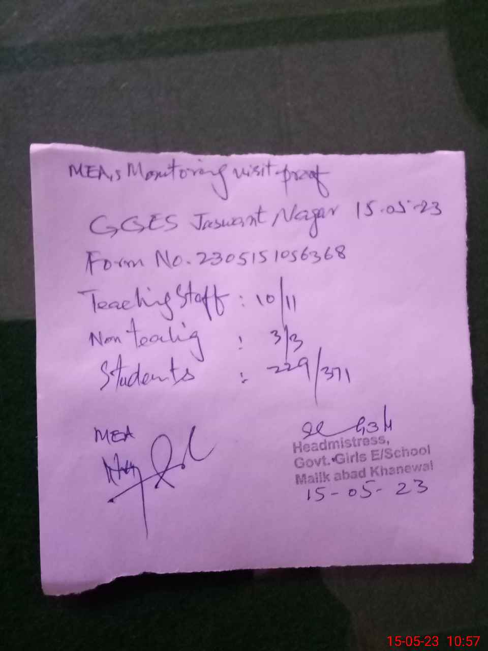 | EMIS Code: 36420361 | Name of School: GGES JASWANT NAGAR, MALKA ABAD, KHANEWAL | |||