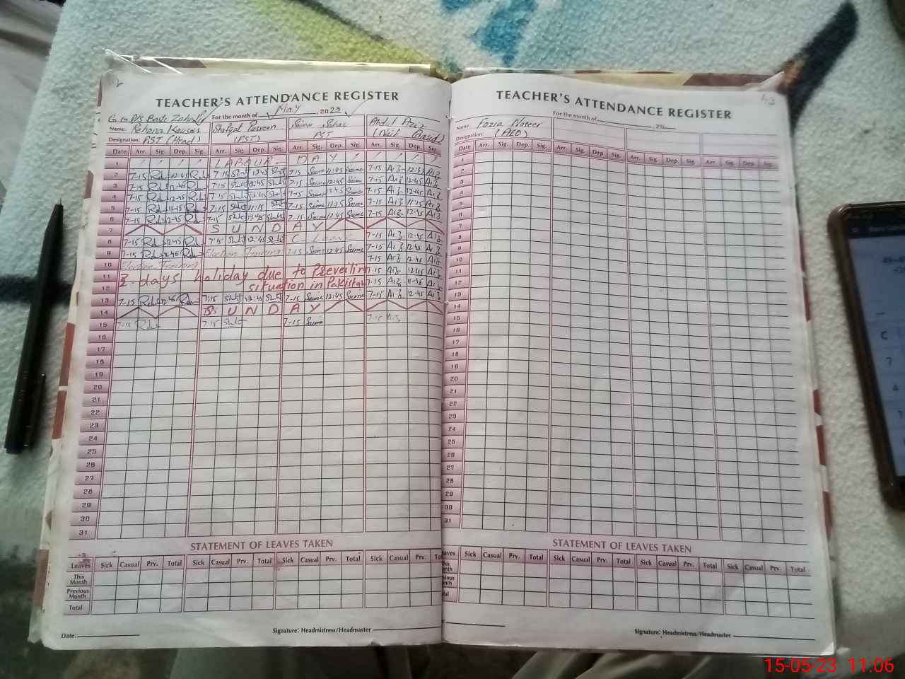 | Name: RE**** KO**** Designation: (School Headmaster's/Headmistress's) PST Phone/Cell Number: 03**** |