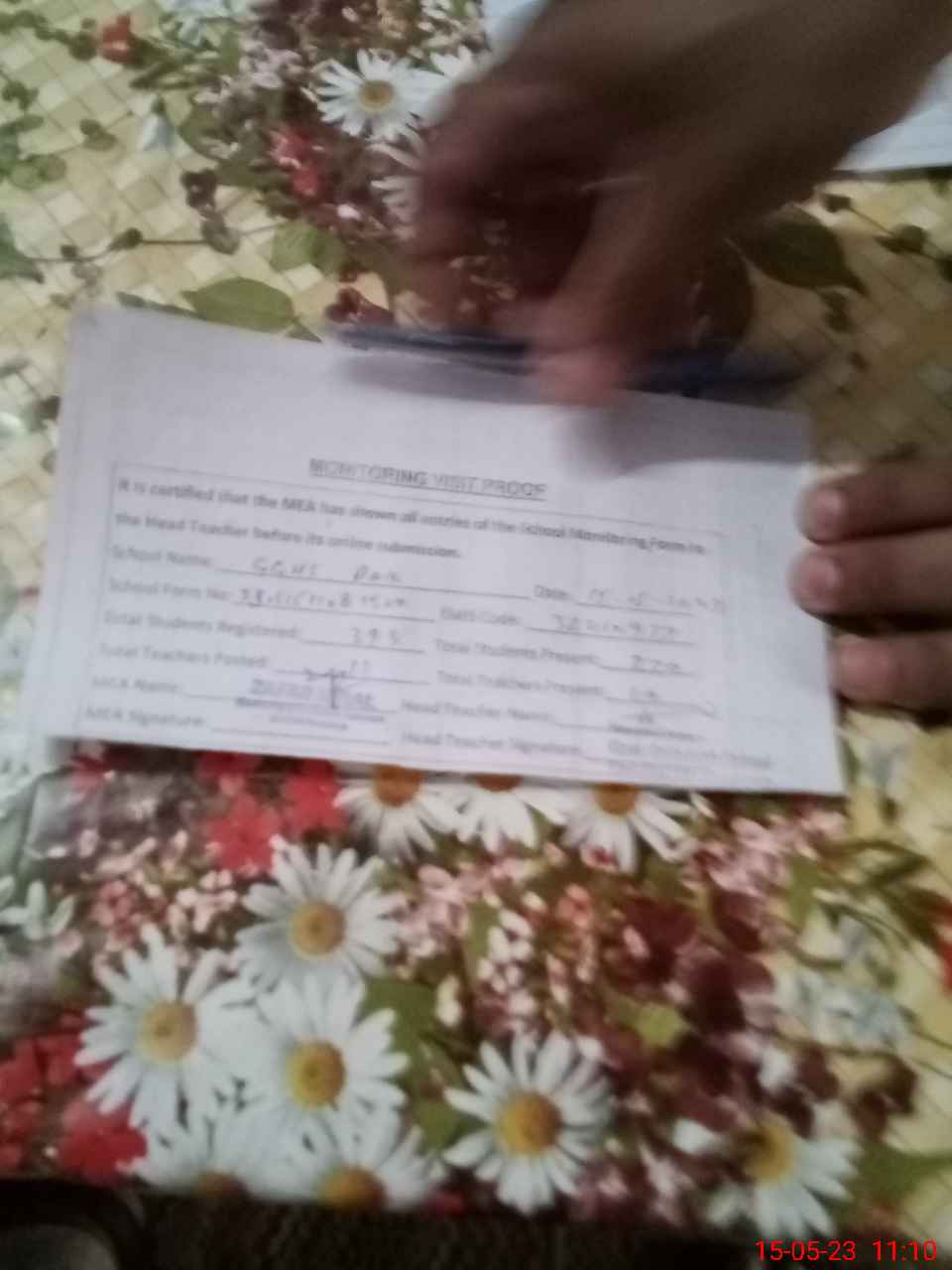 | Name: SH**** MU**** Designation: (School Headmaster's/Headmistress's) S.S.T.(GEN) Phone/Cell Number: 03**** |