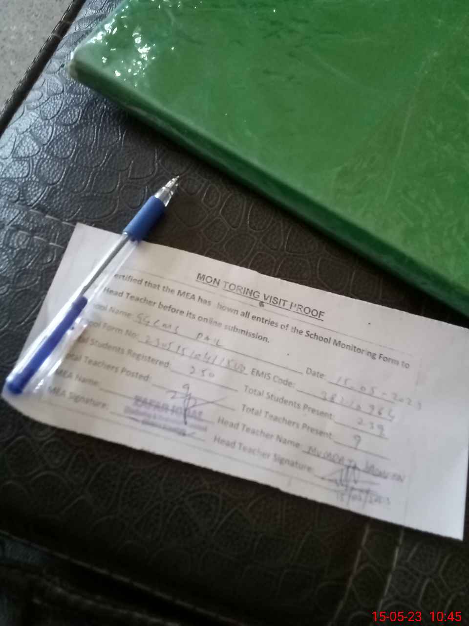 | Attendance Register | Head Teacher | MEA with School | Visit Proof |