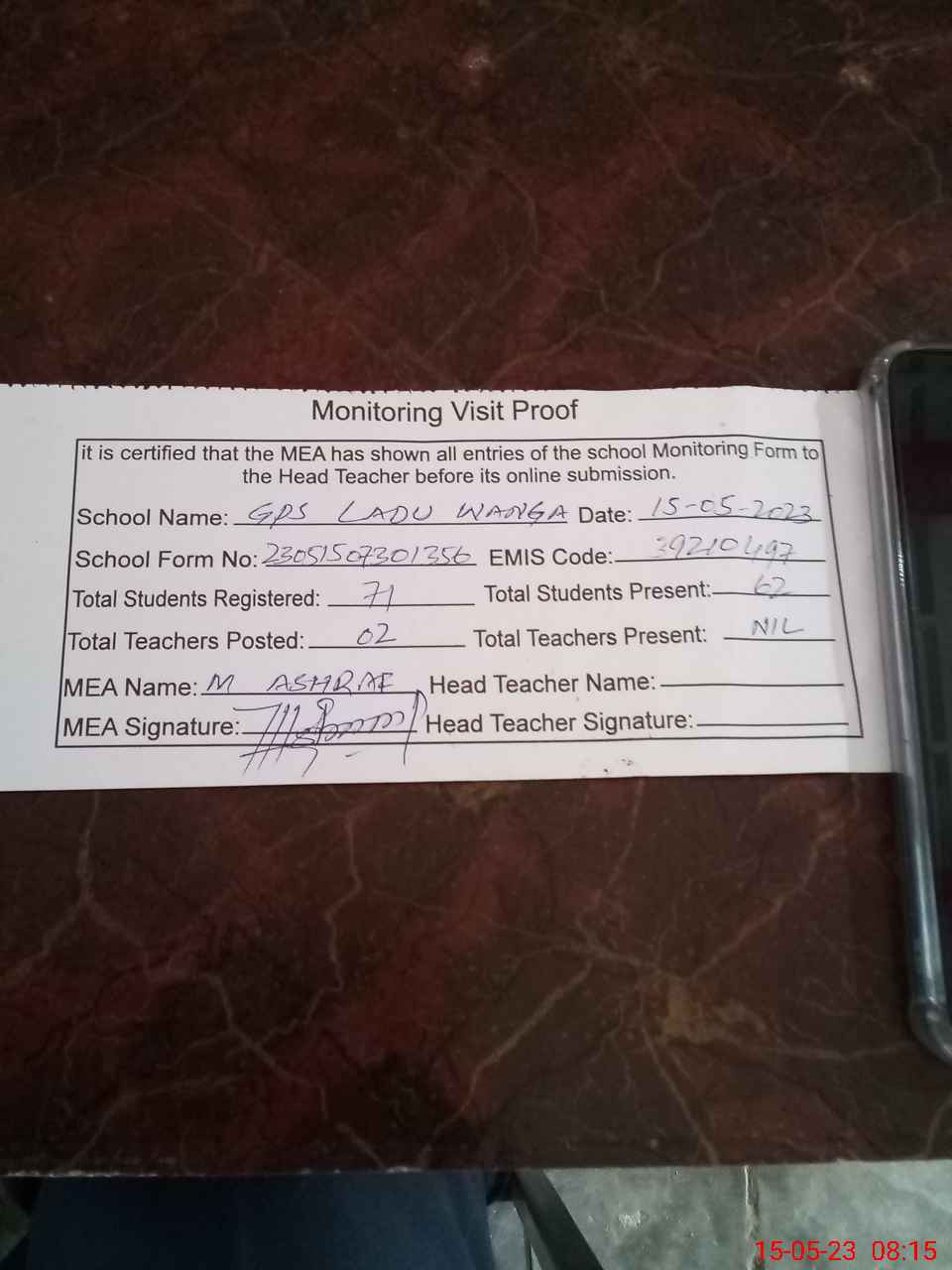 | EMIS Code: 39210497 | Name of School: GPS LADHU WANGA | |||