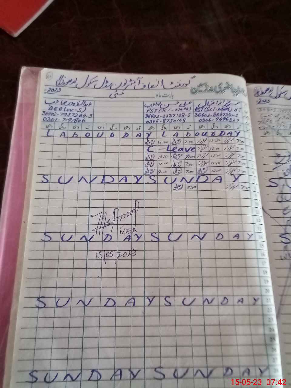 | Name: Mu**** Sa**** Iq**** Designation: (School Headmaster's/Headmistress's) PST Phone/Cell Number: 03**** |