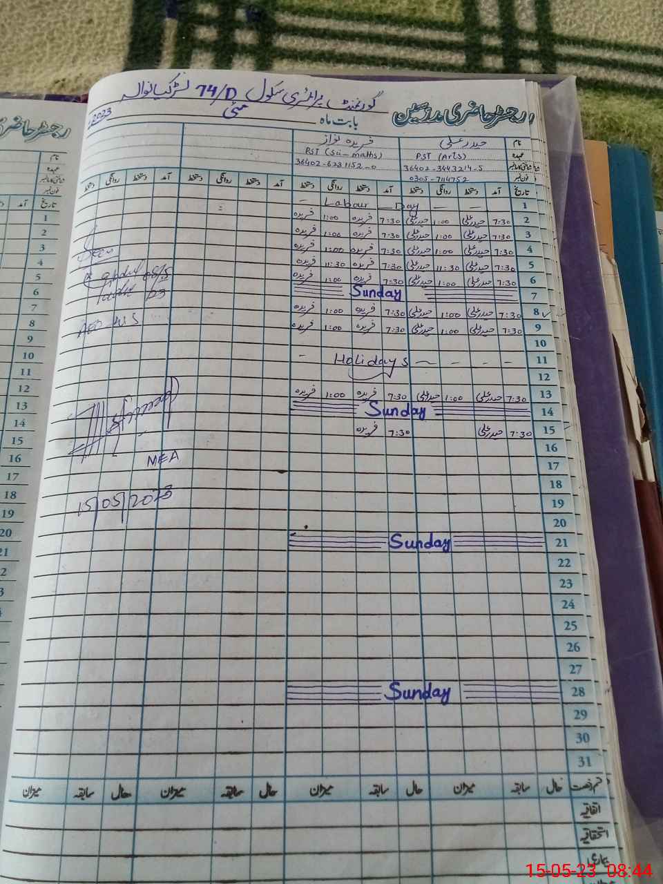 | Name: HA**** AL**** Designation: (School Headmaster's/Headmistress's) PST Phone/Cell Number: 03**** |