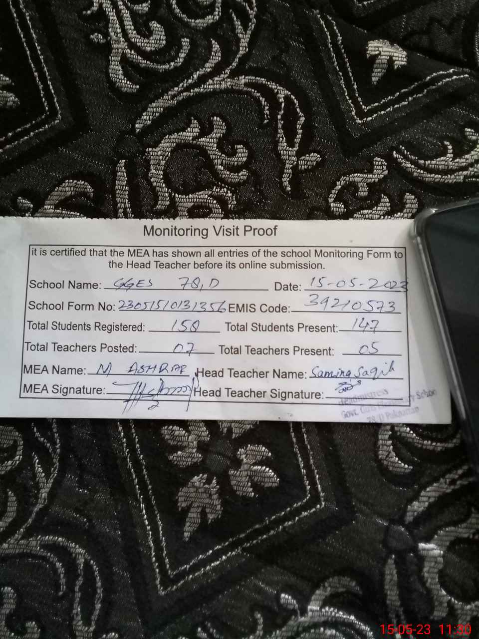 | EMIS Code: 39210573 | Name of School: GGES CHAK NO. 78/D | |||