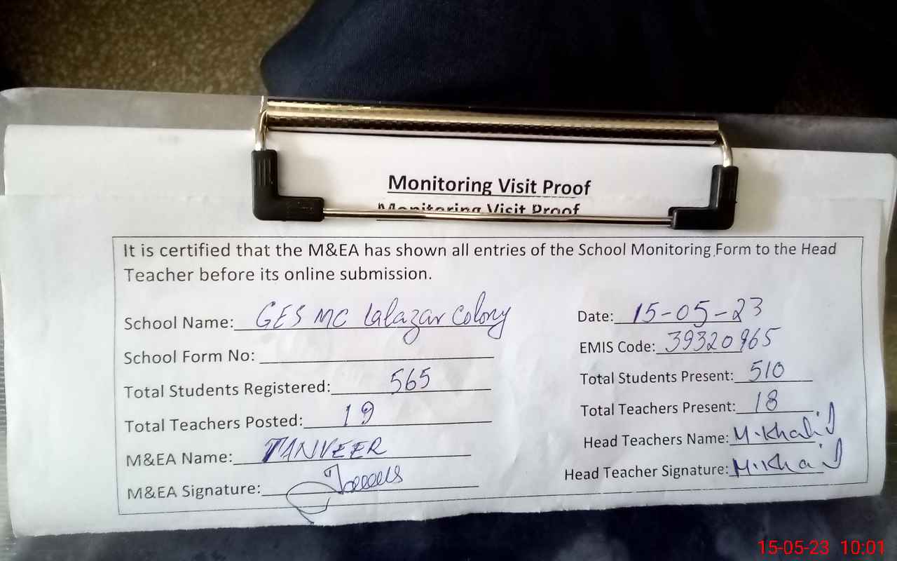 | EMIS Code: 39320965 | Name of School: GES MC LALAZAR COLONY | |||