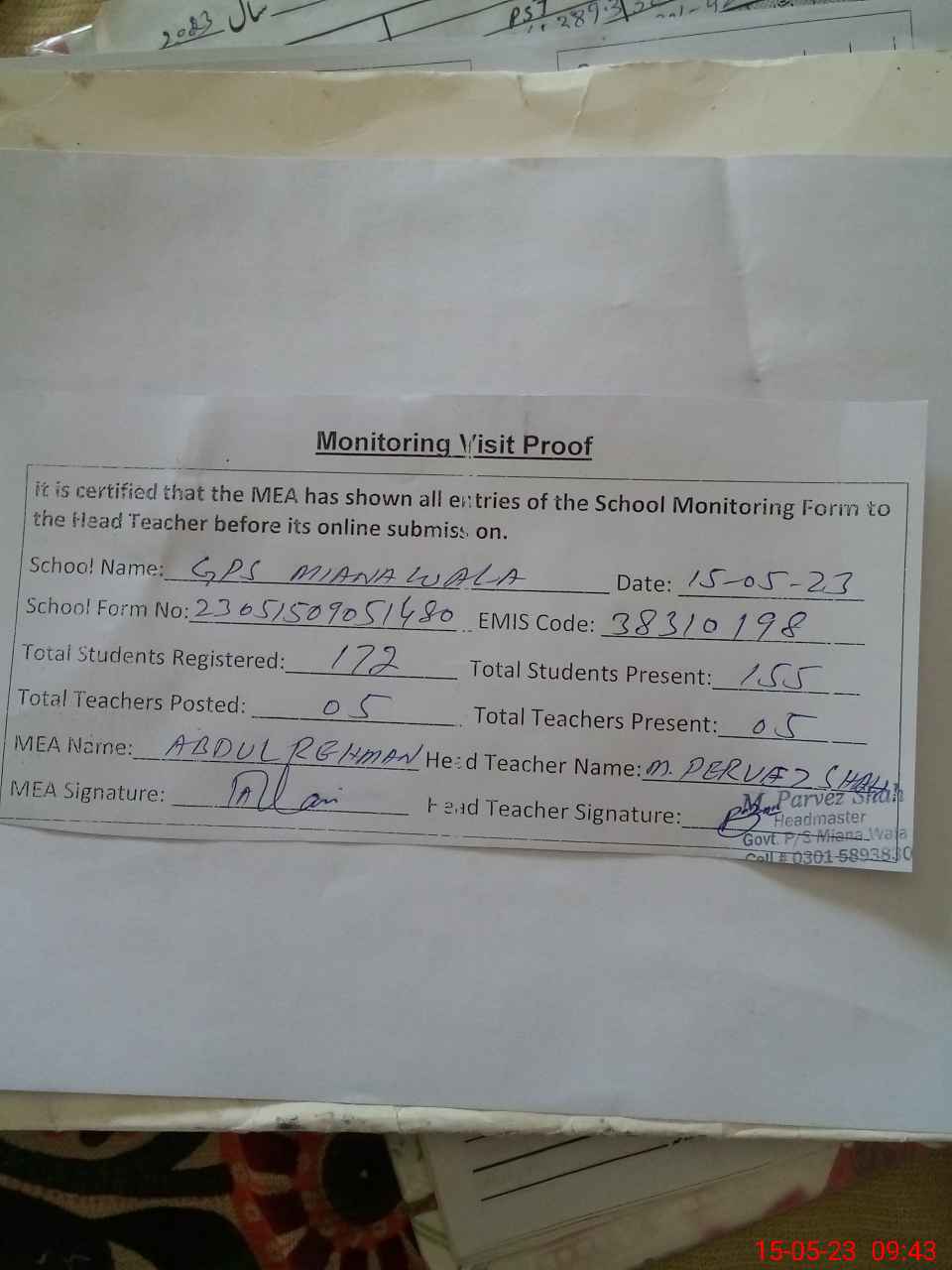 | EMIS Code: 38310198 | Name of School: GPS MIANA WALA | |||