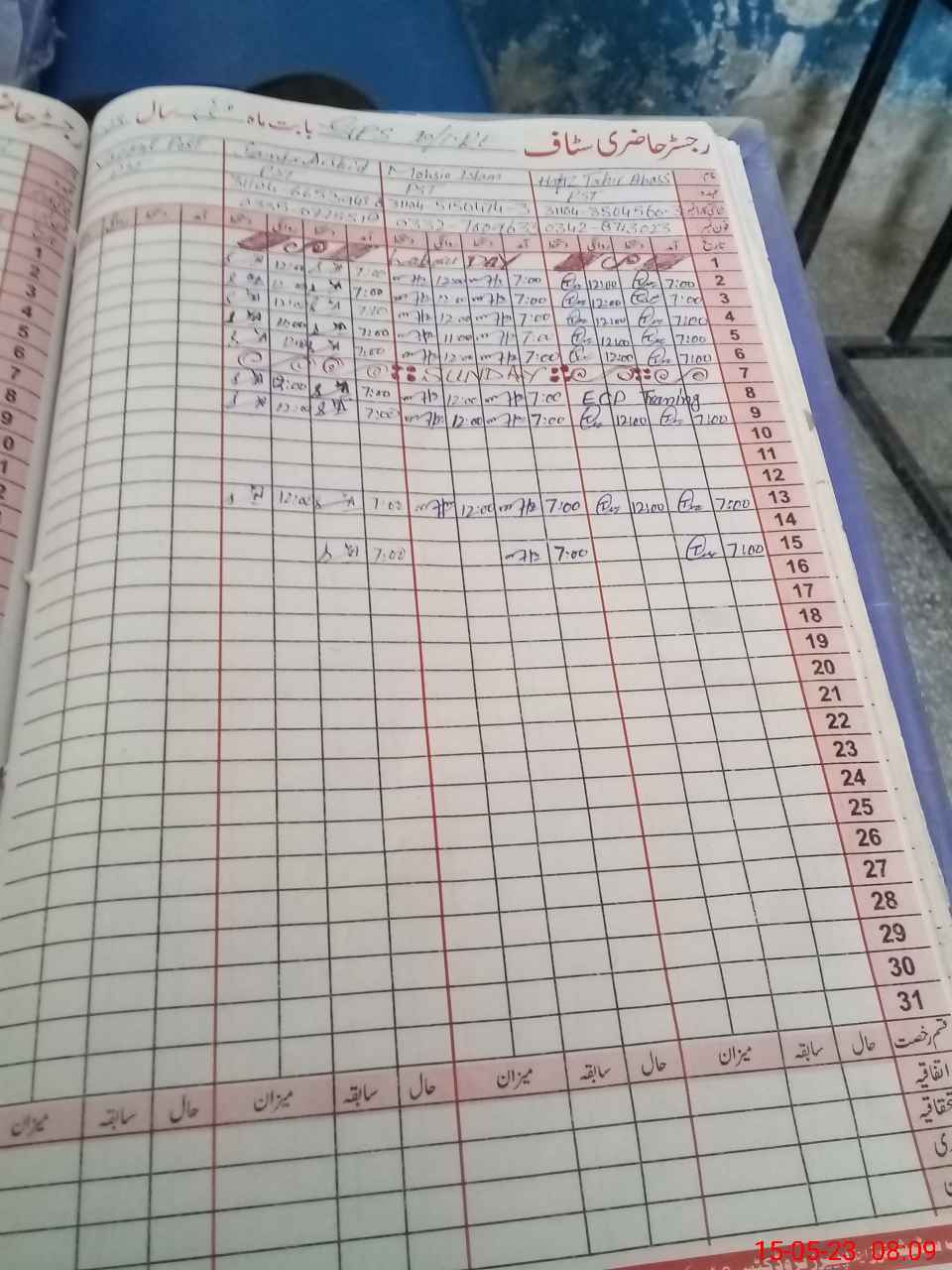| CNIC | Full Name | Designation | R/C | Absence During Last Calender Month |