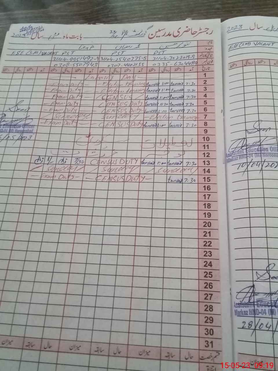 | 31**** | Al**** Ra**** | PST | Regular | 0 | 30 | 0 | 0 | 0 | 0 | 0 | 0 | 0 | Exam Duty |