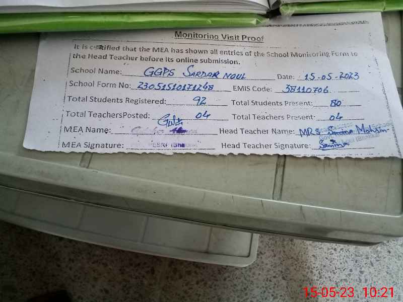 | EMIS Code: 38110706 | Name of School: GGPS SARDAR NOUL | |||