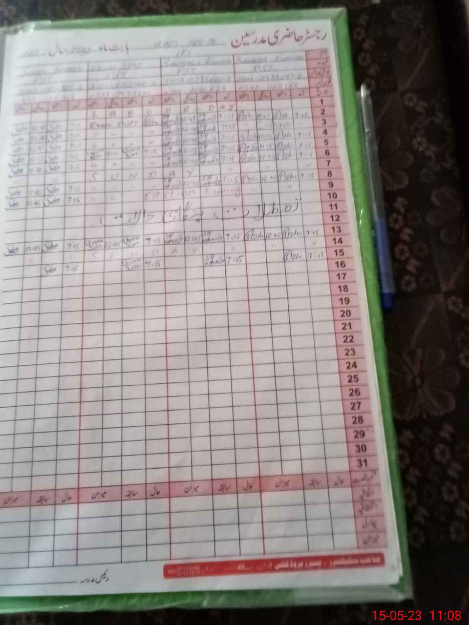 | CNIC | Full Name | Designation | R/C | Absence During Last Calender Month |