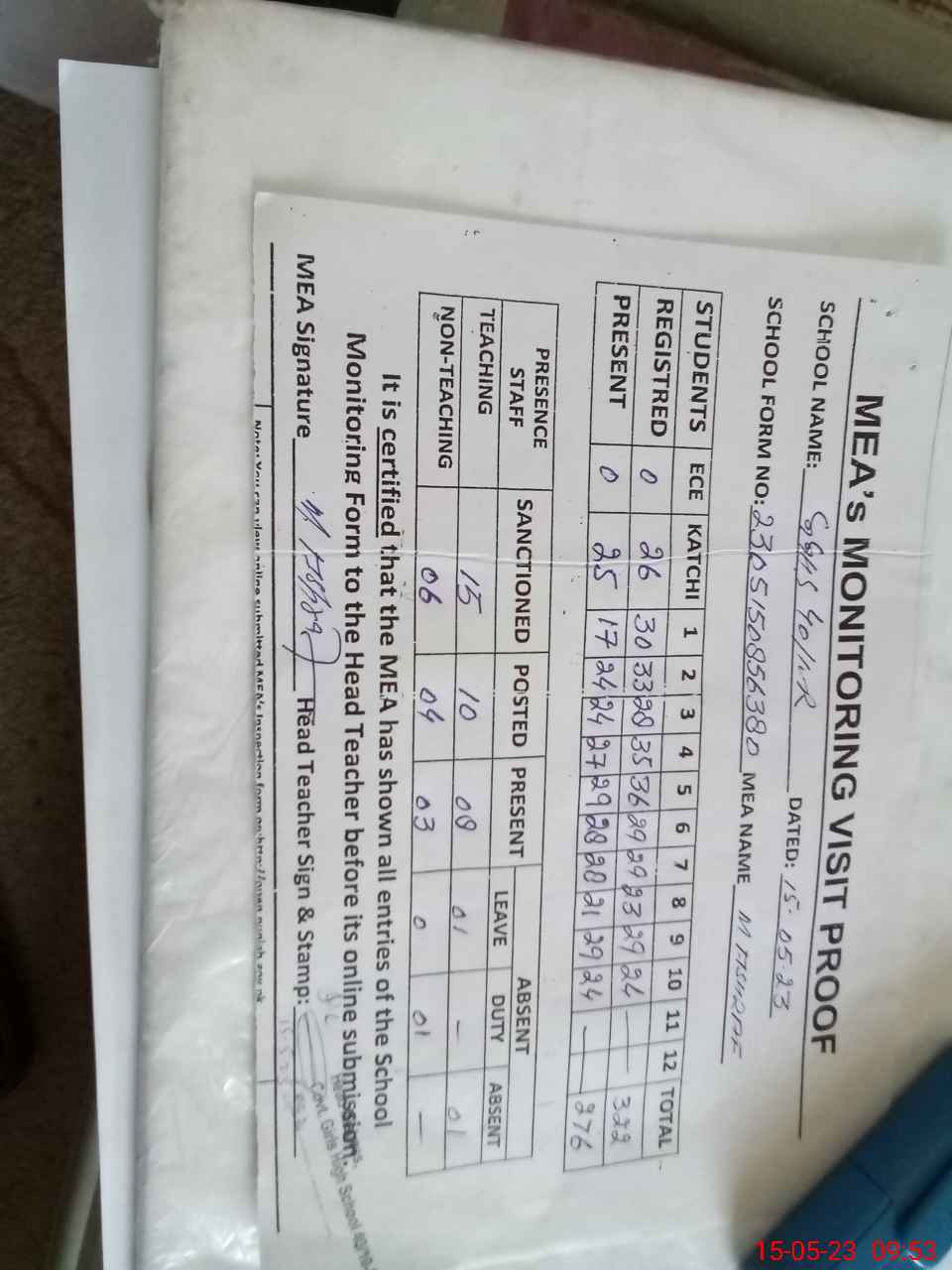 | Certified that this School was Inspected by the Undersigned MEA/DMO Today and the Information Stated Above is as Per Record. | |||||