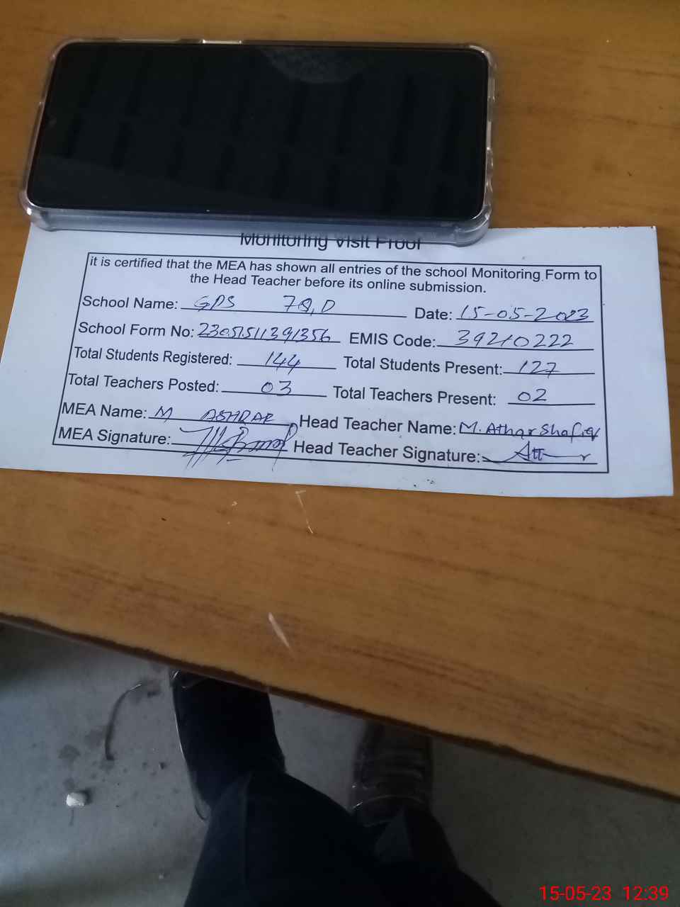 | EMIS Code: 39210222 | Name of School: GPS CHAK NO. 78/D | |||