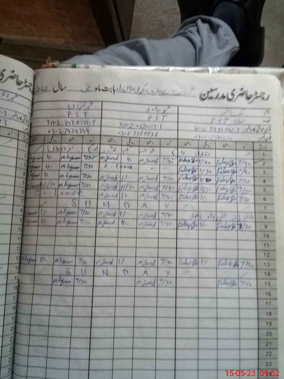 | Name: MU**** JA**** Designation: (School Headmaster's/Headmistress's) PST Phone/Cell Number: 03**** |