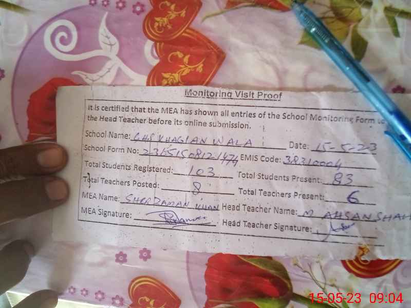 | EMIS Code: 38310004 | Name of School: GHS KHAGLAN WALA | |||