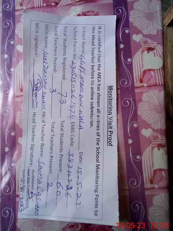 | Certified that this School was Inspected by the Undersigned MEA/DMO Today and the Information Stated Above is as Per Record. | |||||