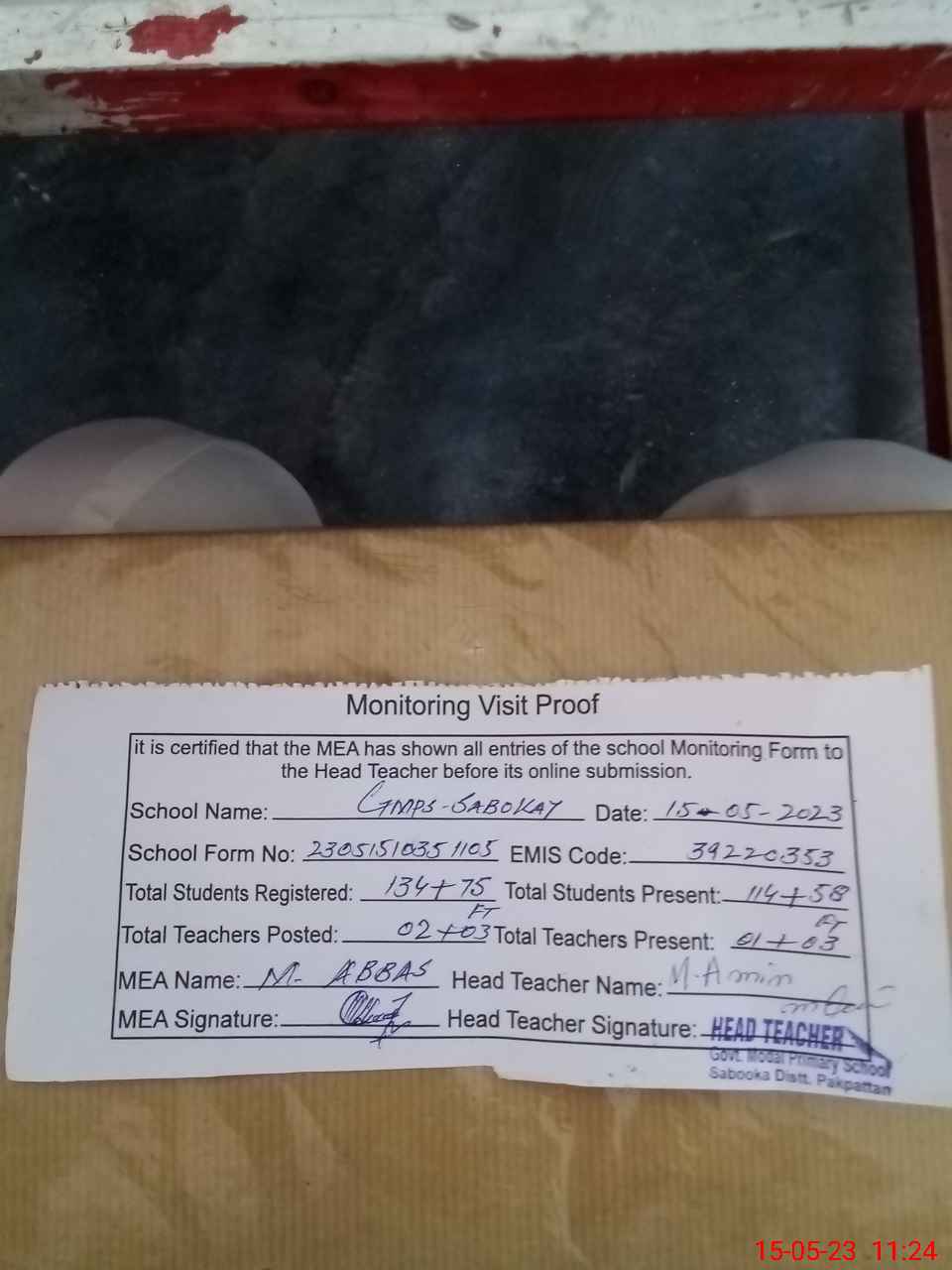 | EMIS Code: 39220353 | Name of School: GMPS SABOOKA DAKHANA TIBI LAL BAIG | |||