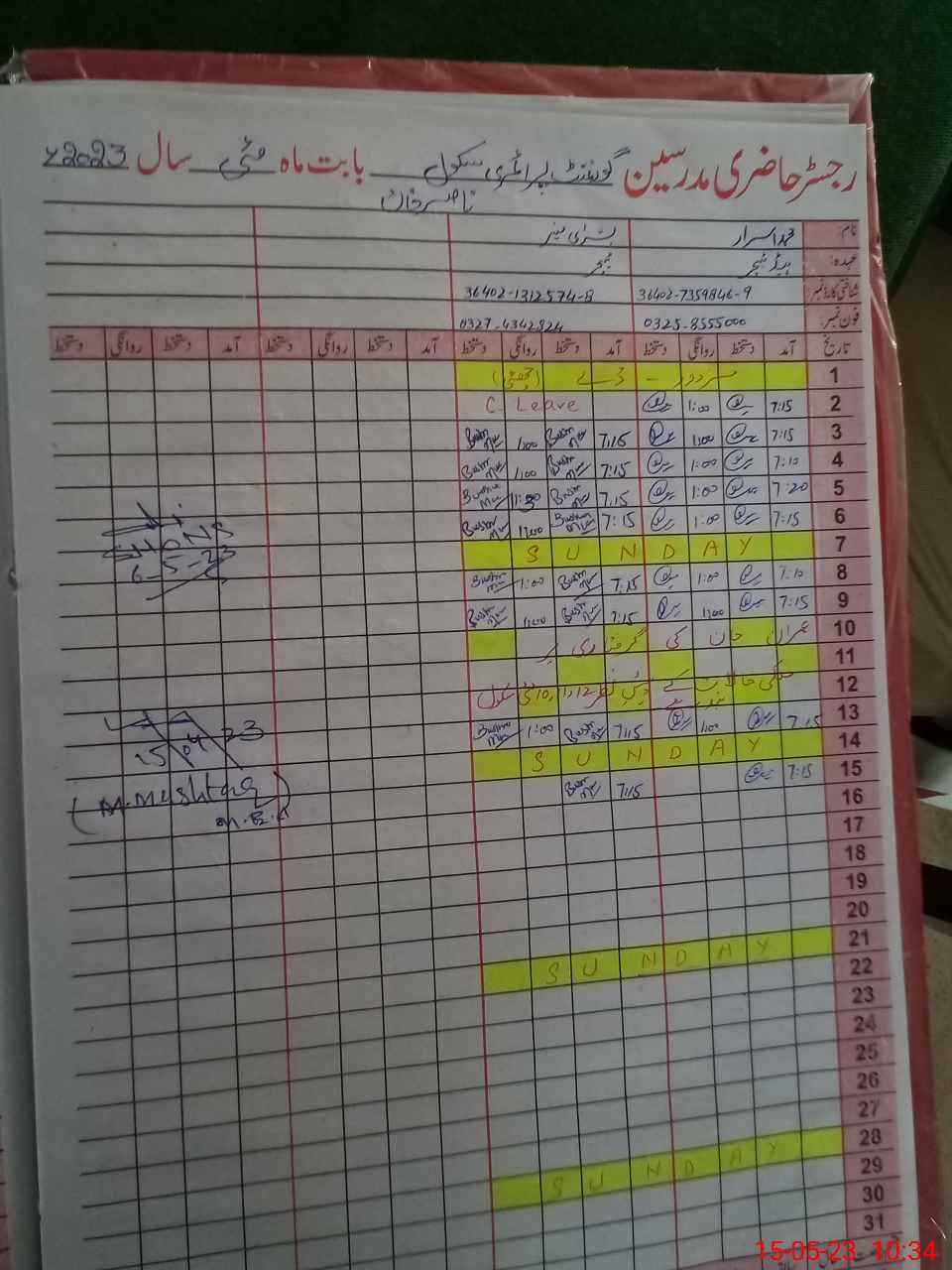| Name: BU**** MU**** Designation: (School Headmaster's/Headmistress's) PST Phone/Cell Number: 03**** |