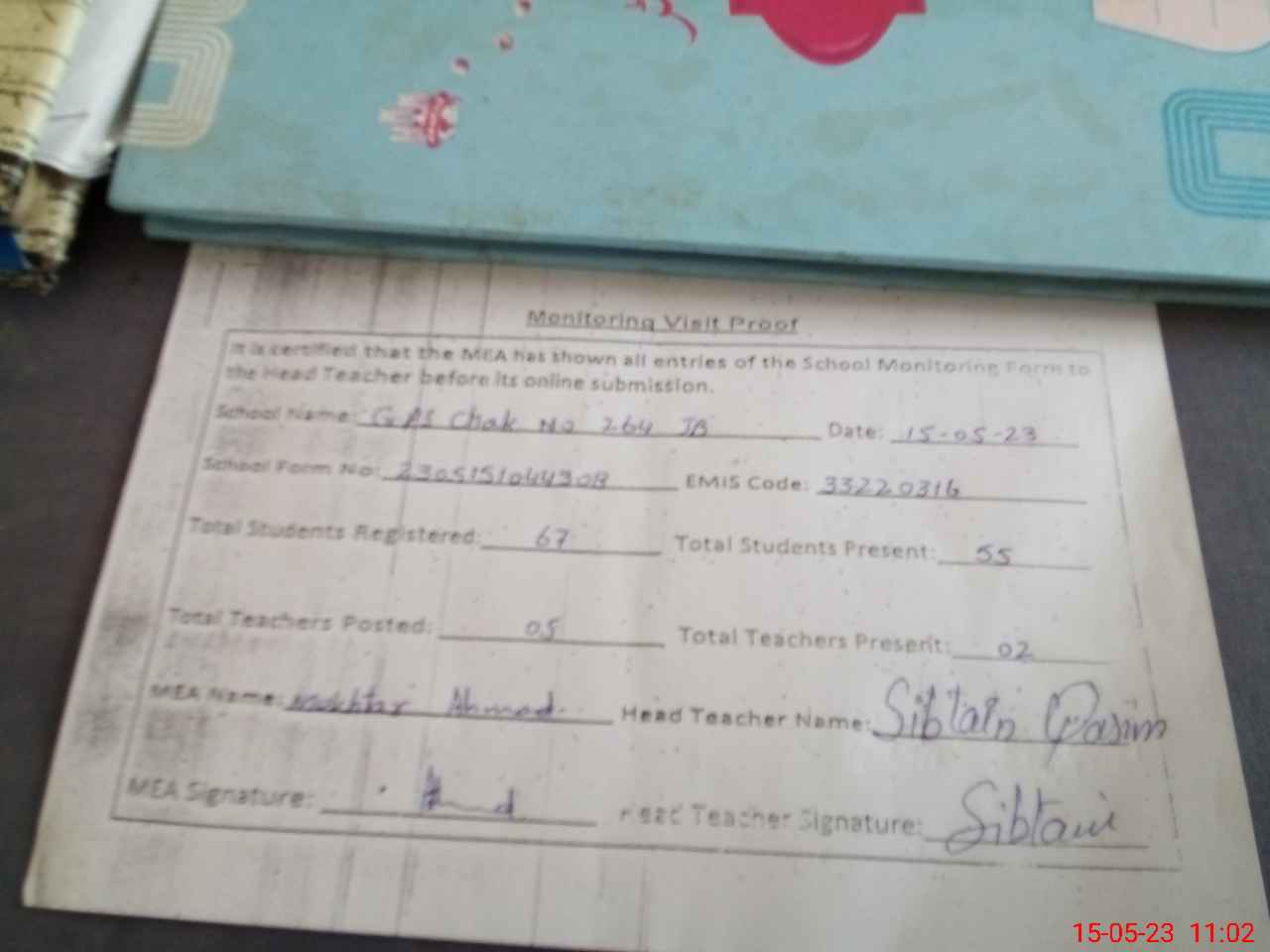| EMIS Code: 33220316 | Name of School: GPS CHAK NO 264 JB | |||