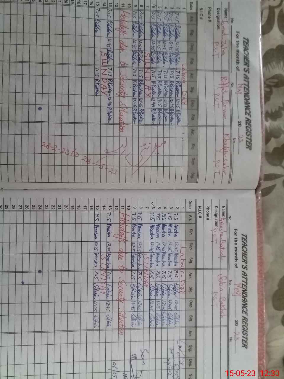 | 33**** | Kh**** Sa**** | PST | Regular | 30 | 0 | 0 | 30 | 0 | 0 | 0 | 0 | 0 | Maternity |