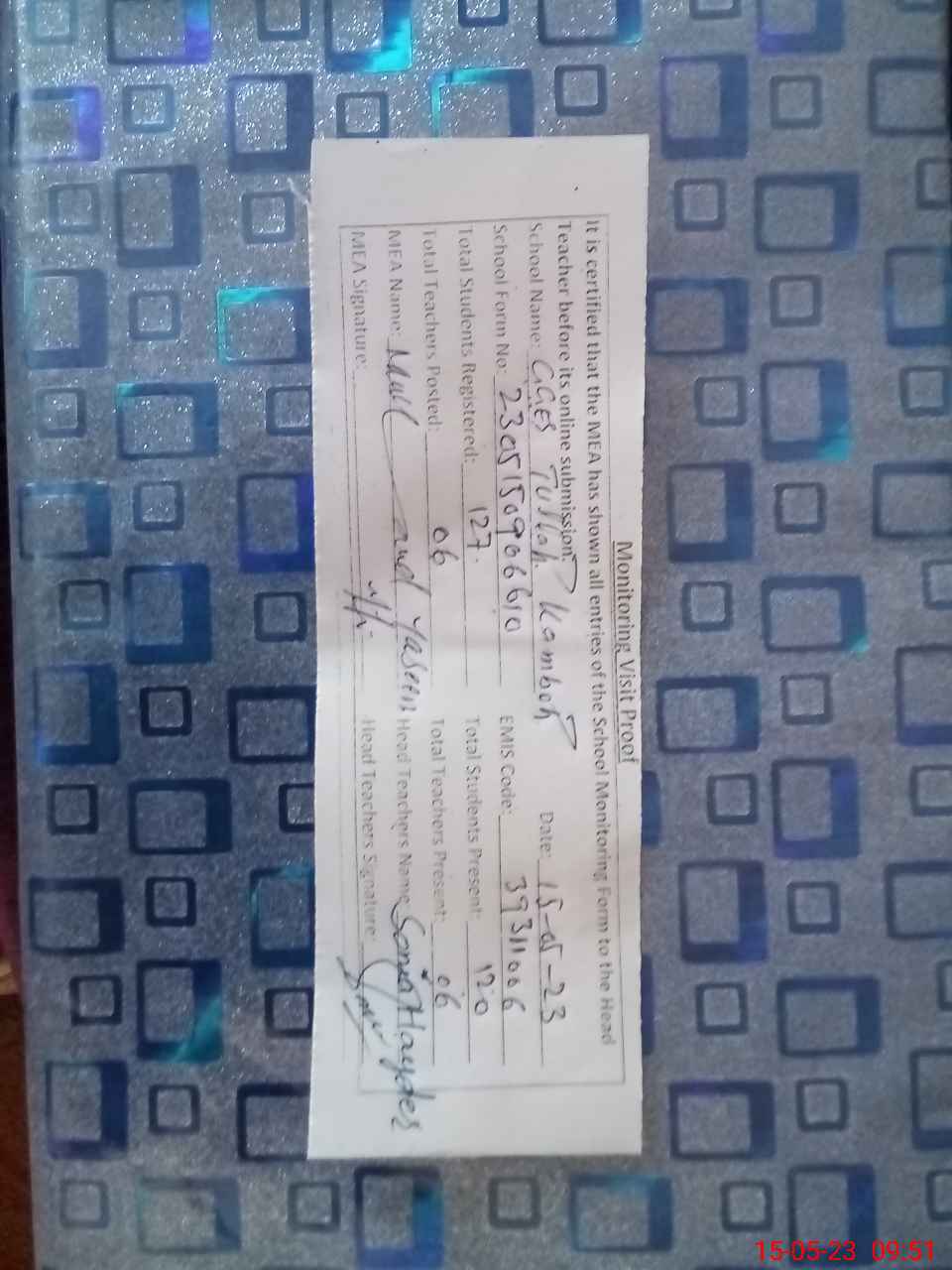| EMIS Code: 39311006 | Name of School: GGES TULLAH KAMBOH | |||