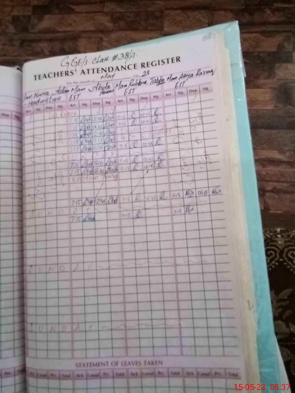 | 31**** | Ni**** As**** | Contract | 0 | 30 | 0 | 0 | 0 | 0 | 0 | 0 | 0 | Exam Duty | |