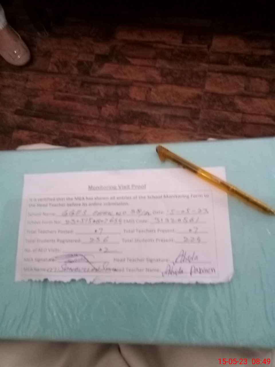 | Monitoring Date: 15-05-2023 | Start Time: 15-05-2023 08:06 AM | End Time: 15-05-2023 08:50 AM | Name of MEA: Mu**** Sa**** Ul**** Sa**** | |
