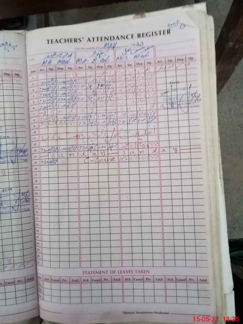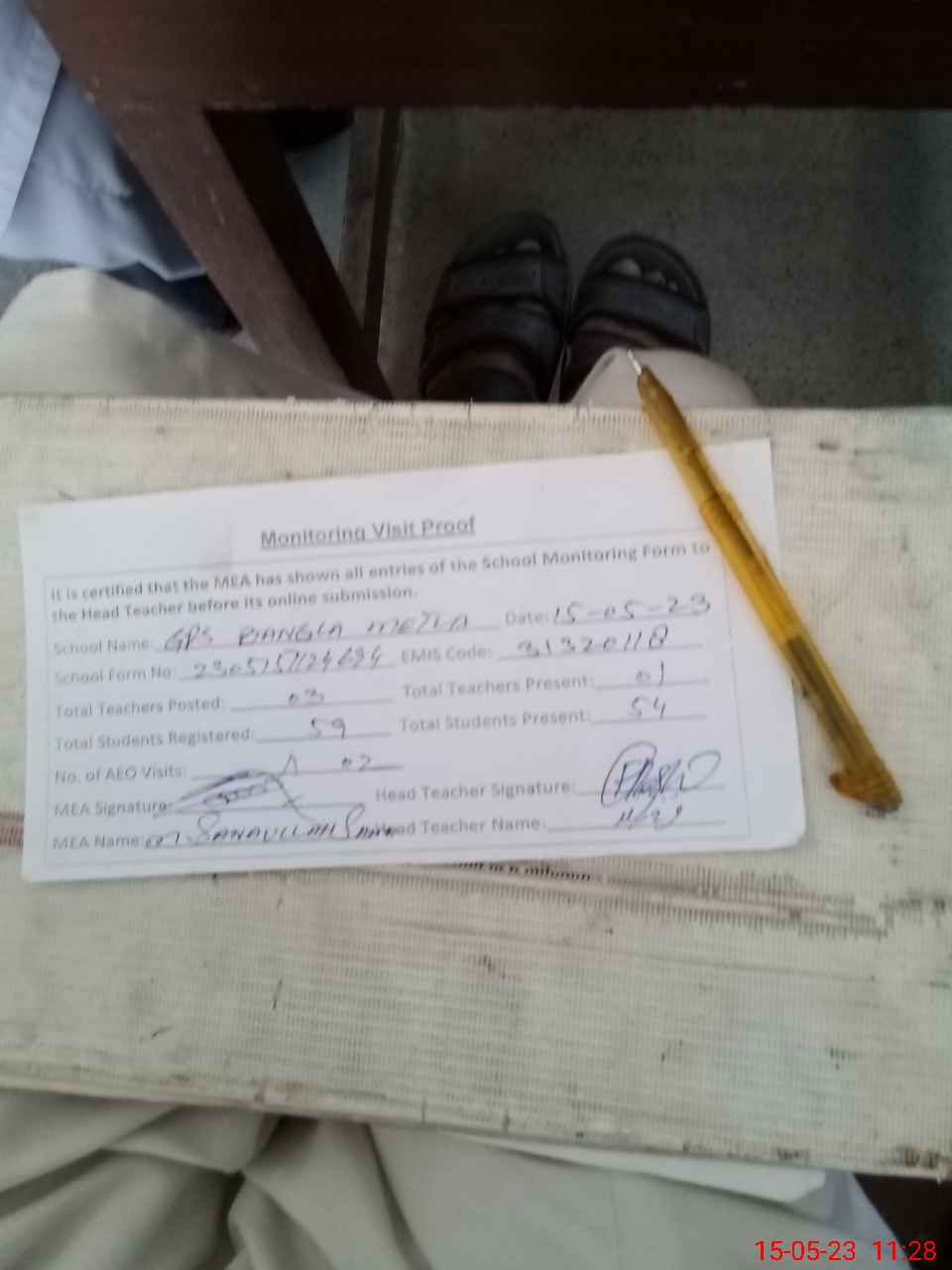 | Attendance Register | Head Teacher | MEA with School | Visit Proof |