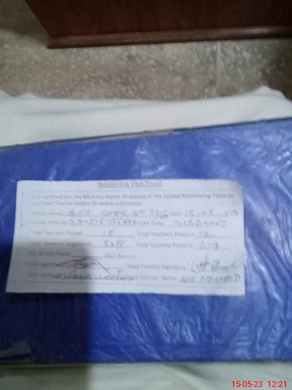 | Attendance Register | Head Teacher | MEA with School | Visit Proof |