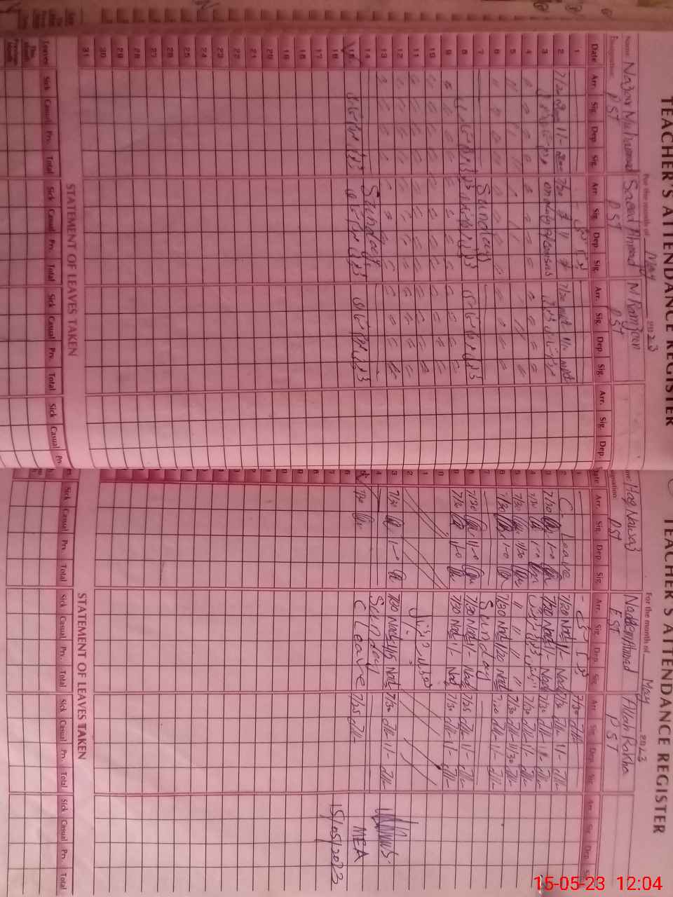 | Remarks (Use Separate Page if Required): Note Teacher Nadeem Ahmad was found absent without sanctioned leave | |||||