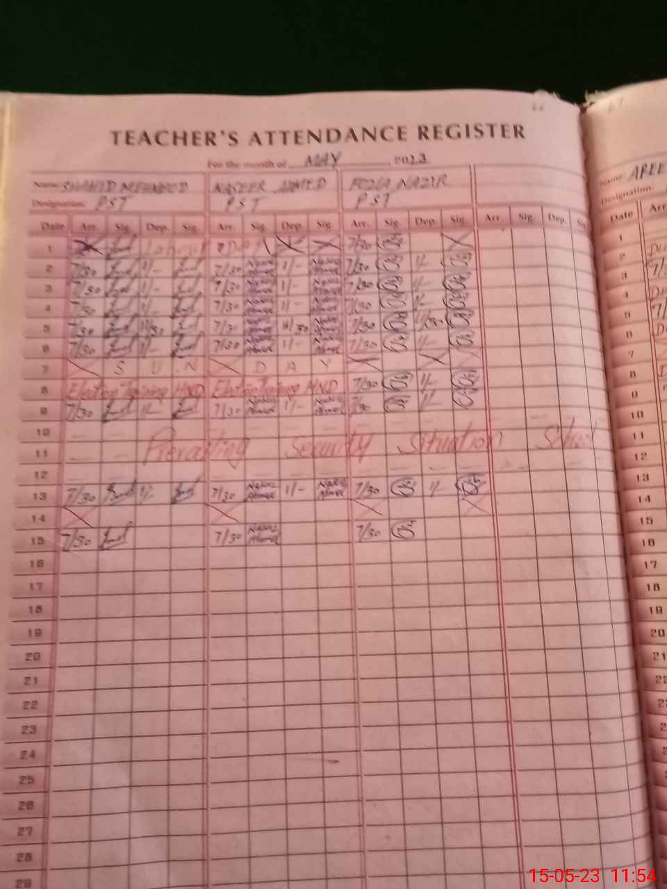 | CNIC | Full Name | Designation | R/C | Absence During Last Calender Month |