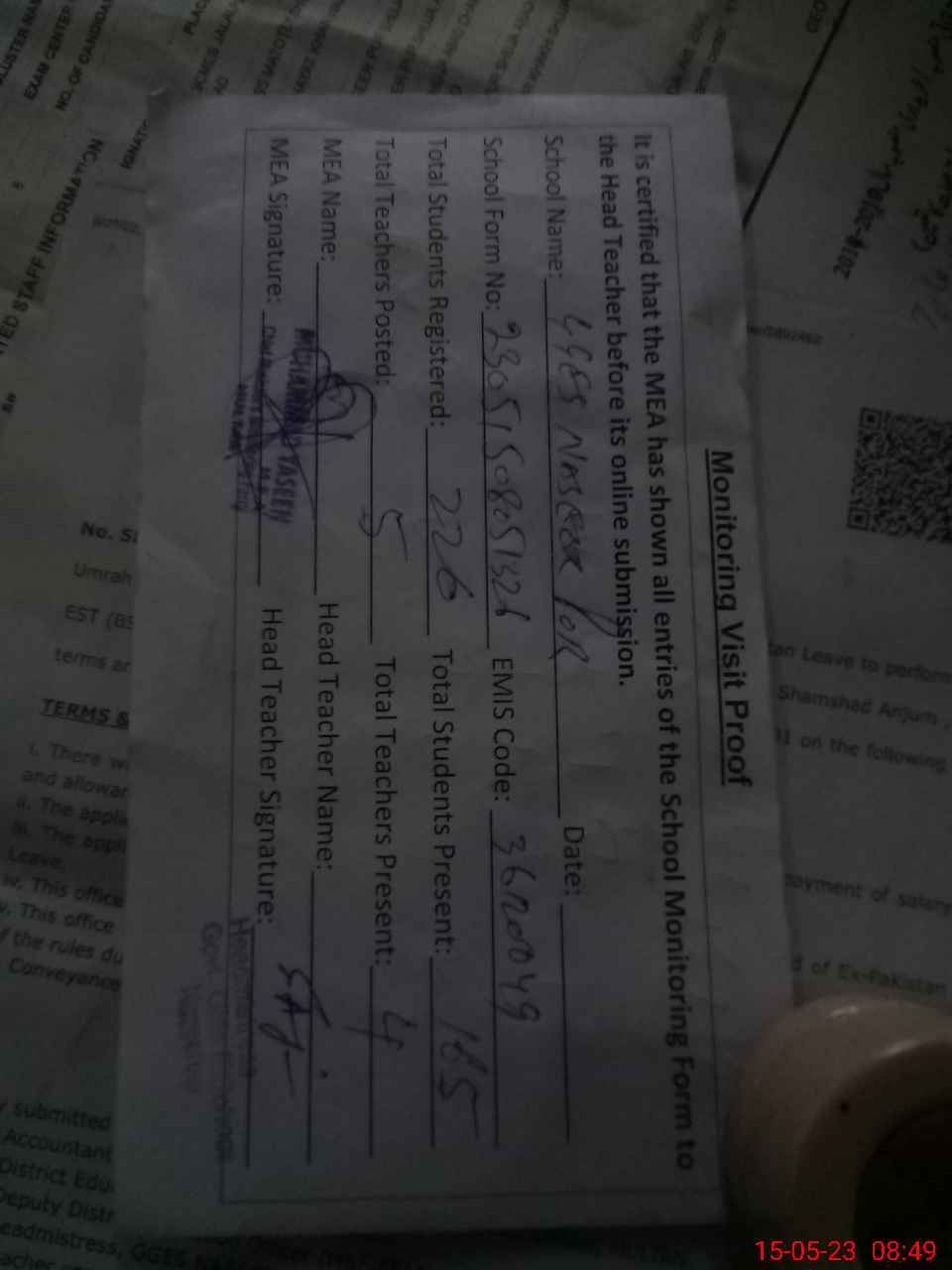 | EMIS Code: 36120049 | Name of School: GGES NASEER PUR SHUJA ABAD | |||