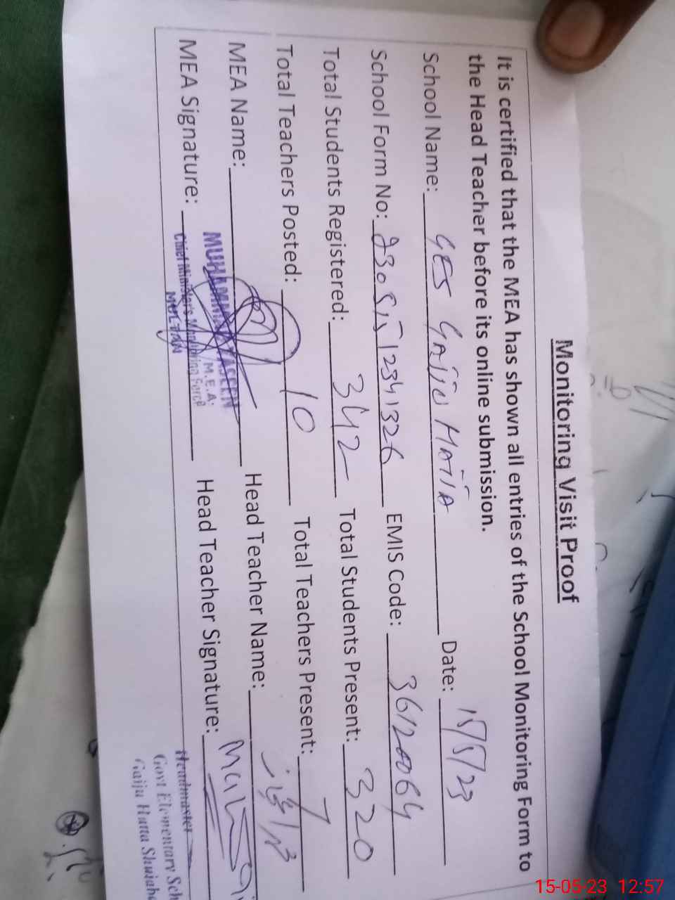 | EMIS Code: 36120064 | Name of School: GES GAJJU HATTA WARD NO 1 P/O SHUJABAD | |||