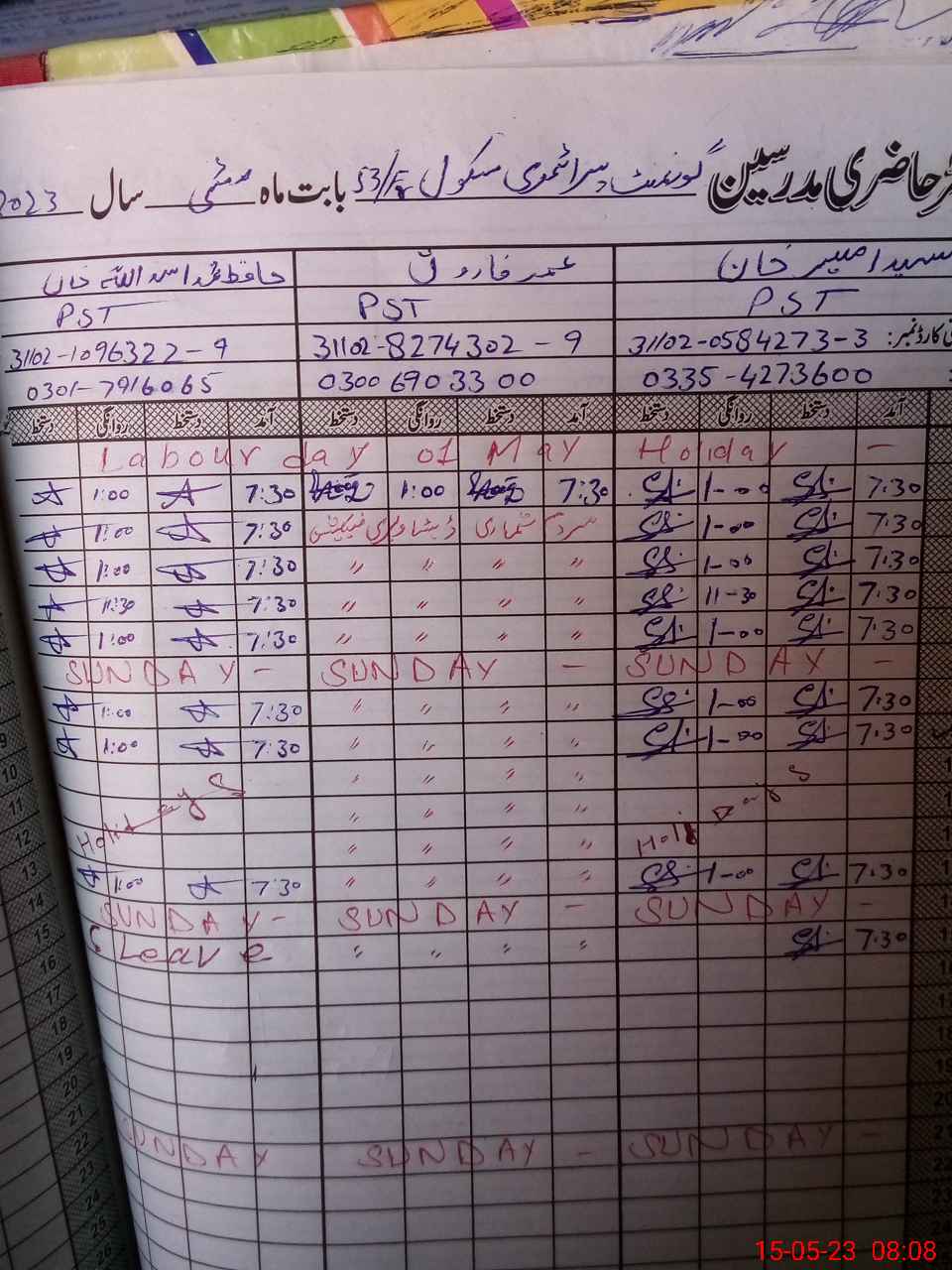 | Name: SA**** AM**** KH**** Designation: (School Headmaster's/Headmistress's) PST Phone/Cell Number: 03**** |