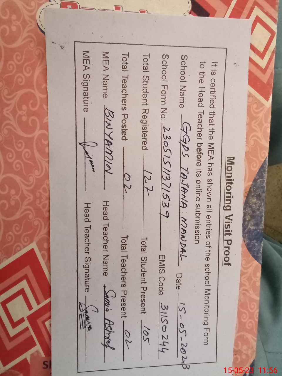 | EMIS Code: 31150244 | Name of School: GGPS TAJANA MANDAL | |||