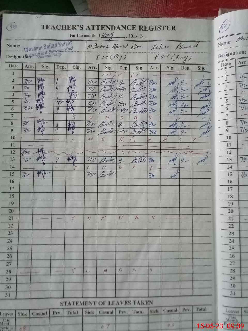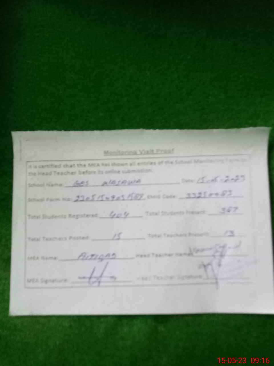 | Attendance Register | Head Teacher | MEA with School | Visit Proof |