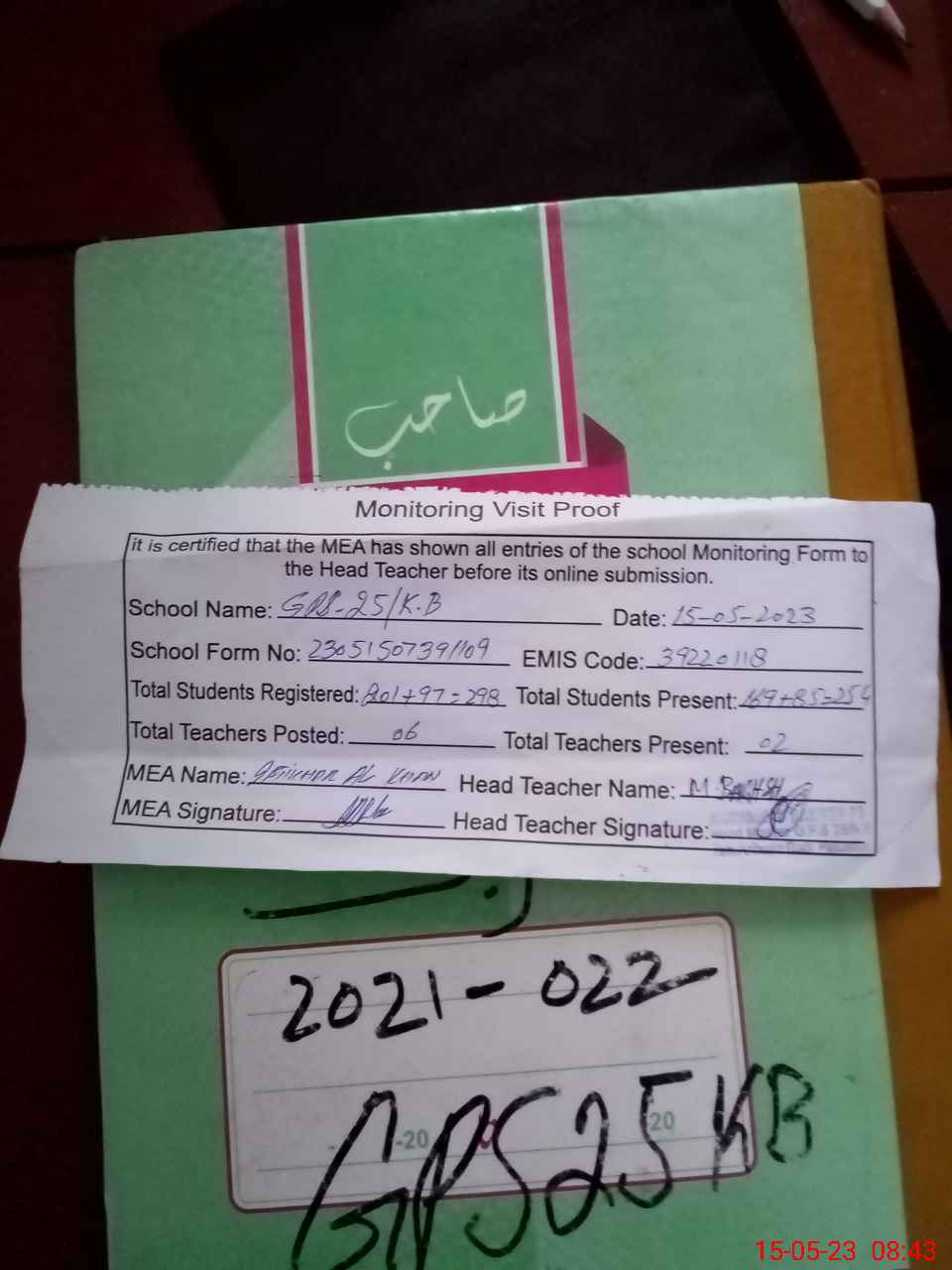 | Attendance Register | Head Teacher | MEA with School | Visit Proof |