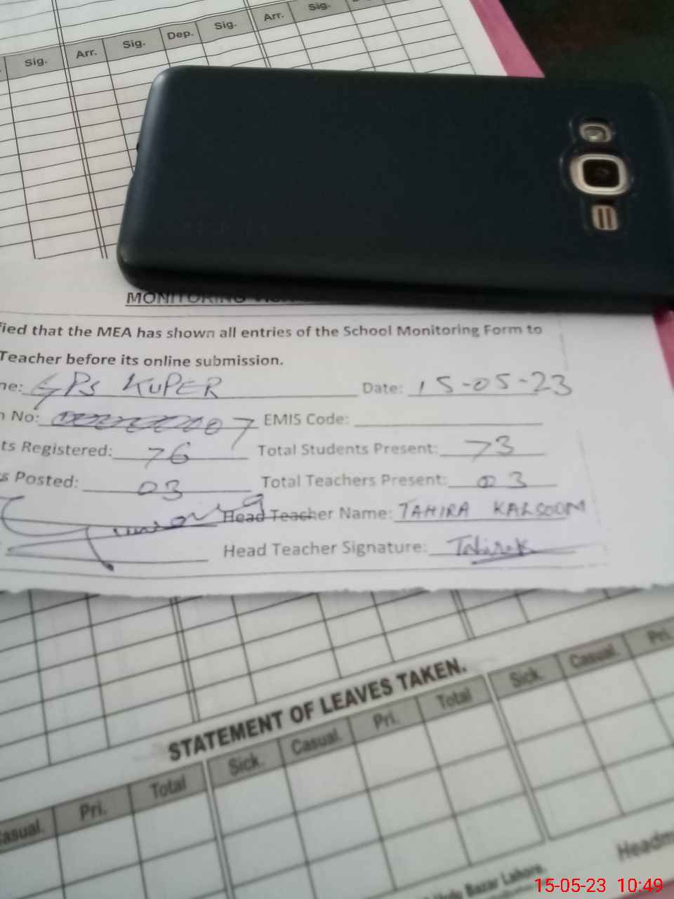 | Attendance Register | Head Teacher | MEA with School | Visit Proof |