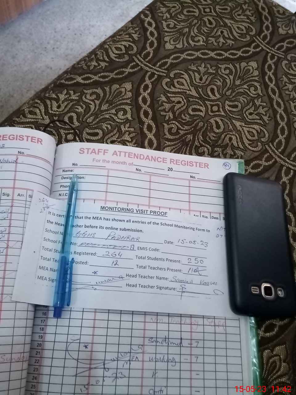 | Attendance Register | Head Teacher | MEA with School | Visit Proof |