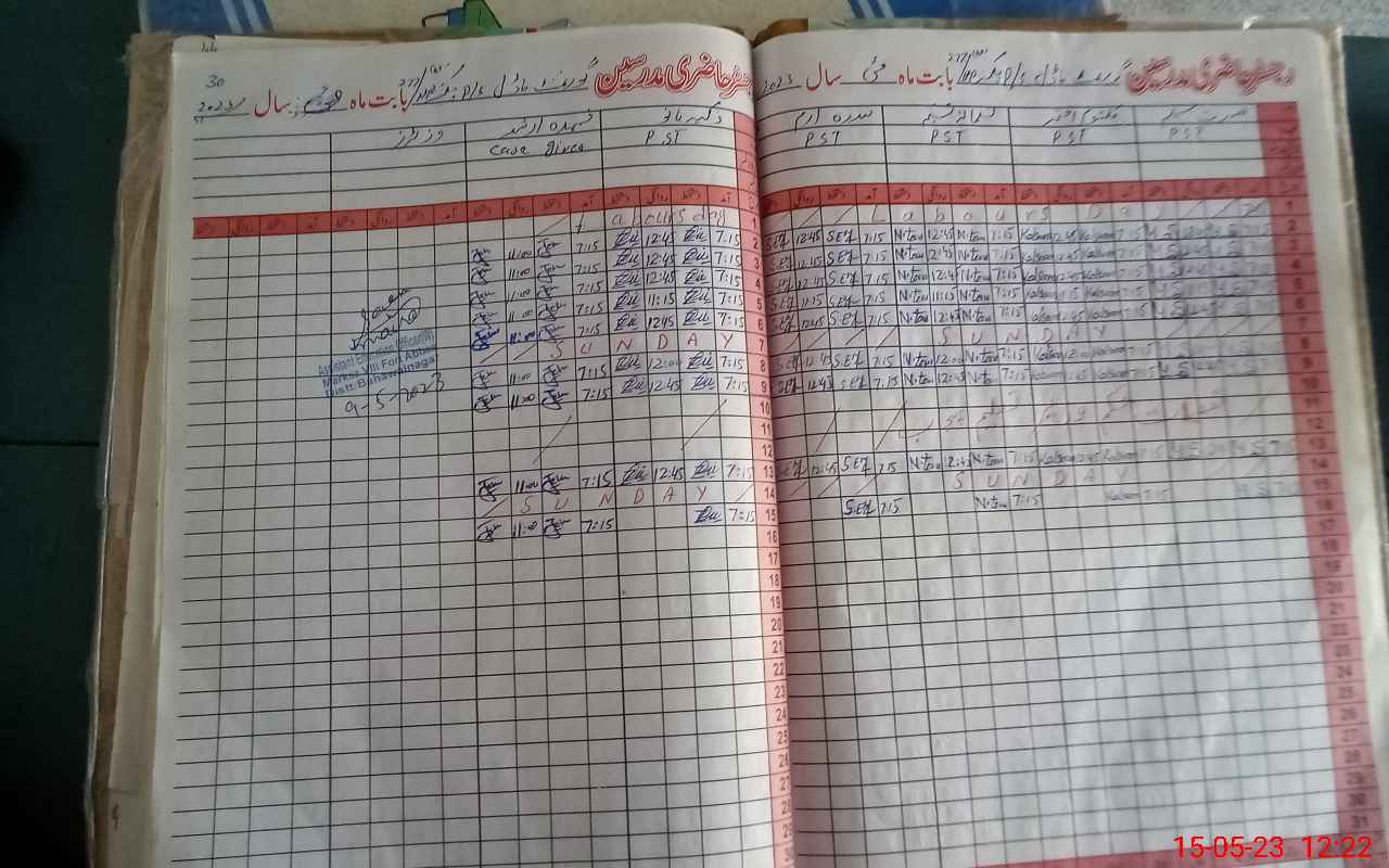 | CNIC | Full Name | Designation | R/C | Absence During Last Calender Month |